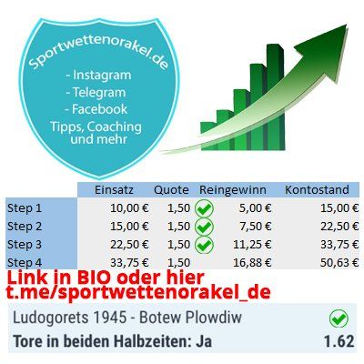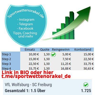 Hier ist der Link zu unserem FREE- Kanal. Einfach per Telegram beitreten: t.me/sportwettenorakel_de